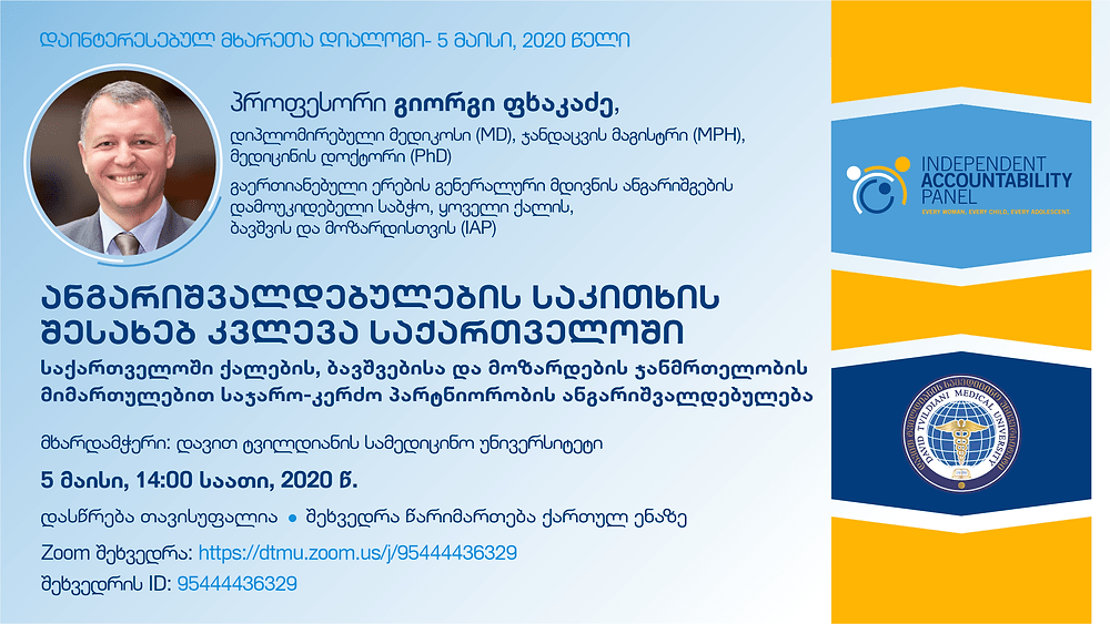 საქართველოში ქალების, ბავშვებისა და მოზარდების ჯანმრთელობის მიმართულებით საჯარო-კერძო პარტნიორობის ანგარიშგების შესახებ კვლევა განხორციელდა და მომზადდა დავით ტვილდიანის სამედიცინო უნივერსიტეტთან ერთად.