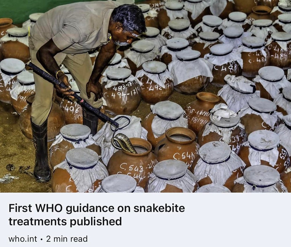 ჯანდაცვის მსოფლიო ორგანიზაციამ (WHO) გამოაქვეყნა პირველი ჯანდაცვის მსოფლიო ორგანიზაციის საზოგადოებრივი სარგებლობის სამიზნე პროდუქტის პროფილები (TPPs) გველის ნაკბენის სამკურნალოდ, ბაზარზე არსებული ანტიშხამების ხარისხის გასაუმჯობესებლად.